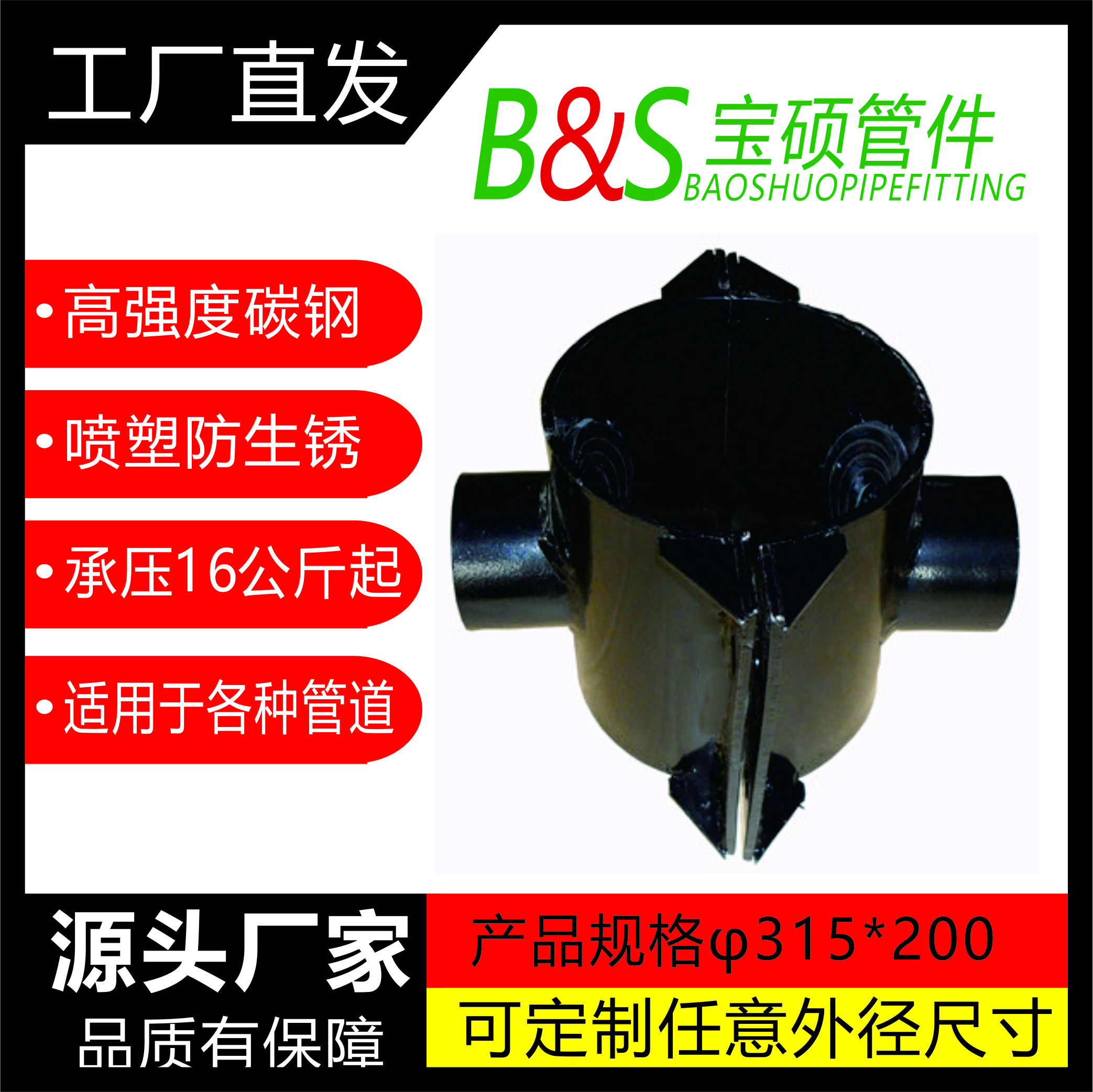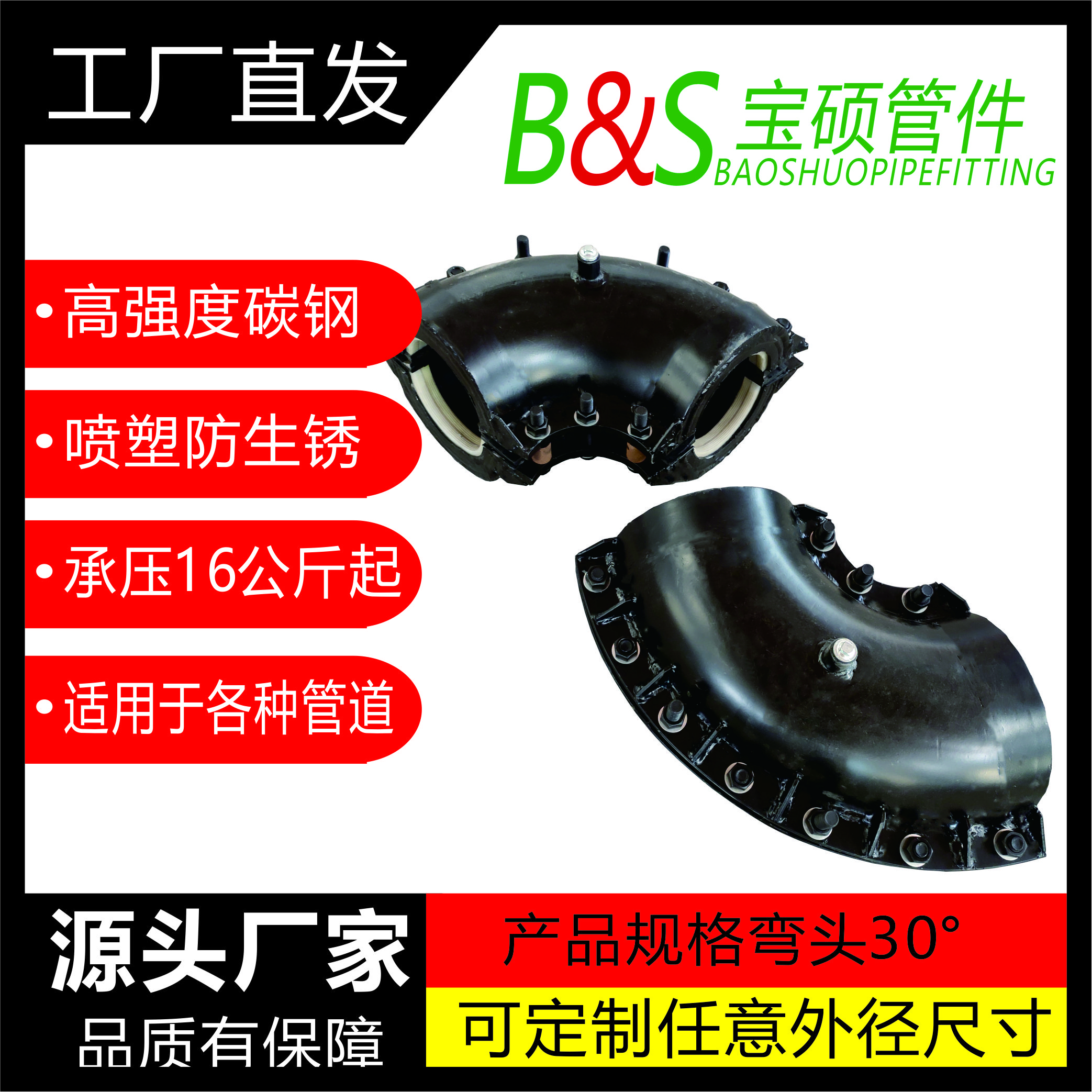 常州市宝硕管件有限公司【常州市宝硕宏图管道配件有限公司】是生产各种管道哈夫节,三通哈夫节,弯头哈夫节,异径等管件哈夫节;高压哈夫节,耐油哈夫节,耐高温哈夫节,耐腐蚀哈夫节,碳钢哈夫节,304.316.316L不锈钢哈夫节。马鞍三通管卡,四通管卡;哈夫三通管卡,四通管卡;承插钢塑管件;柔性快速接口.........
